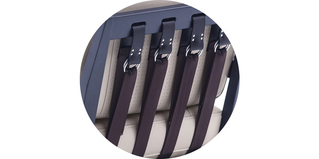 實(shí)木椅架搭配皮帶扣式的椅背,可調(diào)節(jié)松緊,充分滿足乘坐舒適的需求,坐墊可選多款意大利真皮或布料,用質(zhì)感彰顯品質(zhì)。