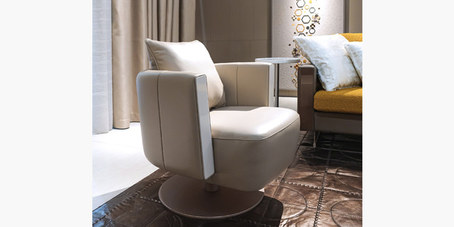 靈巧轉(zhuǎn)動(dòng)設(shè)計(jì),可360度自由旋轉(zhuǎn);真皮靠背填充高密度海綿,柔軟舒適;底座為鋼板轉(zhuǎn)盤(pán)金屬漆處理,防銹耐用。