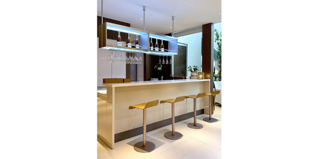 吧椅采用立柱轉(zhuǎn)盤(pán)和拋光腳架設(shè)計(jì),座墊處為優(yōu)質(zhì)樹(shù)膏皮,纖巧時(shí)尚。