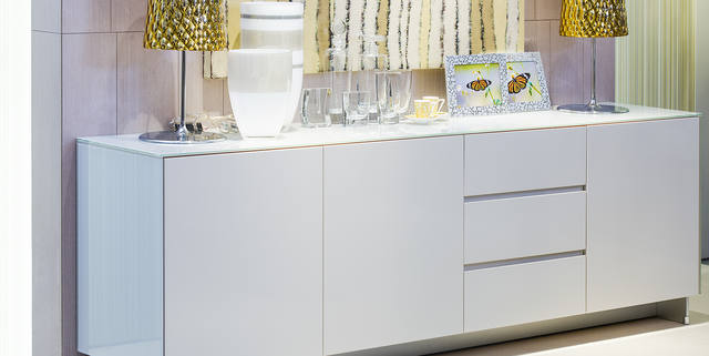 時(shí)尚簡(jiǎn)約的儲(chǔ)物餐邊柜,亮光漆和玻璃相結(jié)合,推彈門(mén)設(shè)計(jì),整體清爽簡(jiǎn)潔;抽屜與開(kāi)門(mén)結(jié)合,收納更實(shí)用。