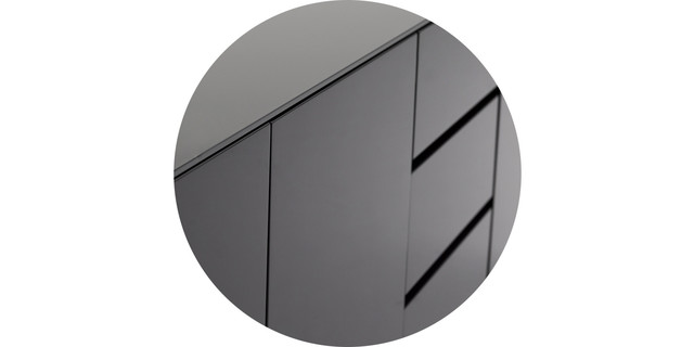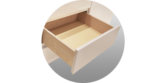 ? 亮光鋼琴漆柜門(mén),經(jīng)2層UV底漆和2層意大利PU亮光漆噴涂處理,羊毛球高速拋光