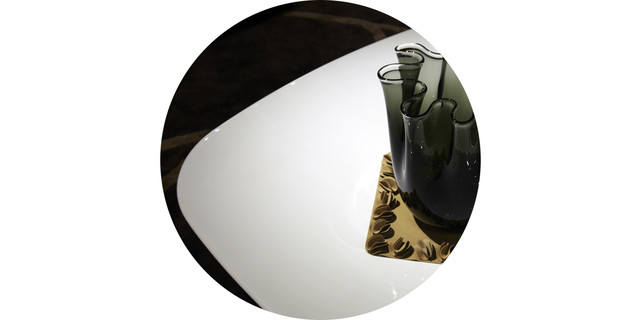 意大利鋼琴漆和玫瑰金色腳的結(jié)合,簡(jiǎn)約中求精致,橢圓外形設(shè)計(jì),線條流暢。