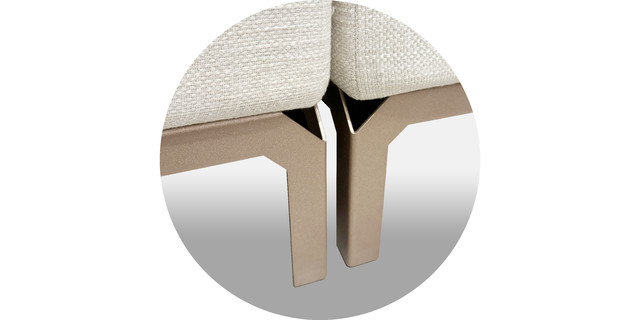 ? 優(yōu)質(zhì)扁鋼腳架特殊防銹處理,經(jīng)1層意大利PU玫瑰金和透明面漆/1層PU深灰面漆噴涂