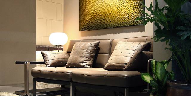沙發(fā)座墊靠墊可選用多款意大利真皮和布料,靠背為皮帶扣式設(shè)計(jì),可調(diào)節(jié)松緊;獨(dú)特的可連接設(shè)計(jì),使組合更靈活。