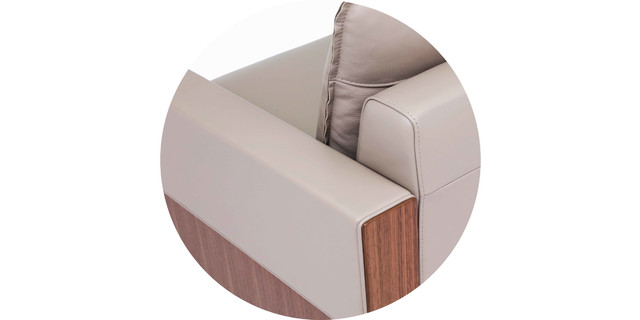 面料采用意大利優(yōu)質(zhì)真皮,胡桃木扶手突出優(yōu)雅的輪廓,讓外觀更加利落。