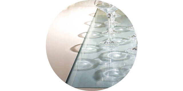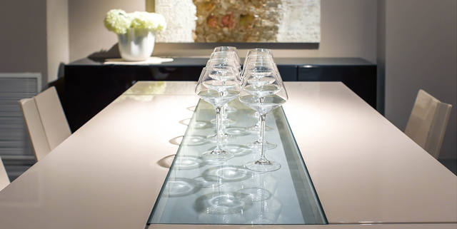 餐桌采用中空玻璃設計,打破傳統(tǒng)的整面設計外,更具有獨特裝飾性。