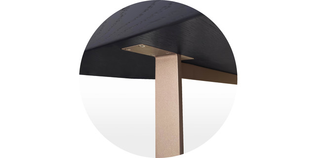 ? 優(yōu)質(zhì)扁鋼臺腳特殊防銹處理,經(jīng)1層意大利PU玫瑰金和透明面漆/1層PU深灰面漆噴涂