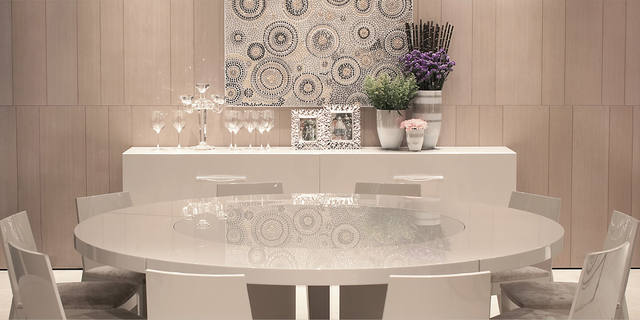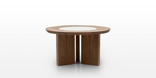木面/亮光面與內(nèi)嵌玻璃轉(zhuǎn)盤設(shè)計(jì),整體時(shí)尚大方;桌面結(jié)合金屬連接件,使餐桌精美耐用。
