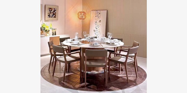 ? 迪信自主研發(fā)電動餐臺轉(zhuǎn)盤,厚度60mm,采用大功率、低噪音電機(jī)搭配高強(qiáng)度齒輪軸承設(shè)計(jì),運(yùn)轉(zhuǎn)穩(wěn)定,噪音小,轉(zhuǎn)盤承重高,最大支持2.3米直徑的玻璃,配套遙控器操控可實(shí)現(xiàn)正反轉(zhuǎn)、調(diào)速等功能