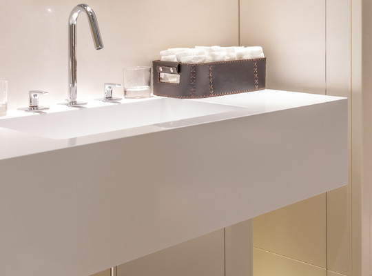 美國(guó)進(jìn)口杜邦可麗耐人造石,包含白色(WN910)及峽谷啡(CN511)系列。主要成份為純度較高的亞克力材料,具有高密度且無孔、耐熱耐撞、不易裂、抗污抑菌、易清潔修補(bǔ)、防紫外線、不易黃變、并有著強(qiáng)大的可塑性和無縫拼接等特點(diǎn)、多用于櫥柜臺(tái)面、洗手盆、浴室臺(tái)面、等家具應(yīng)用,并符合NSF(美國(guó)國(guó)家衛(wèi)生基金會(huì))標(biāo)準(zhǔn)和國(guó)際GREENGUARD標(biāo)準(zhǔn)。