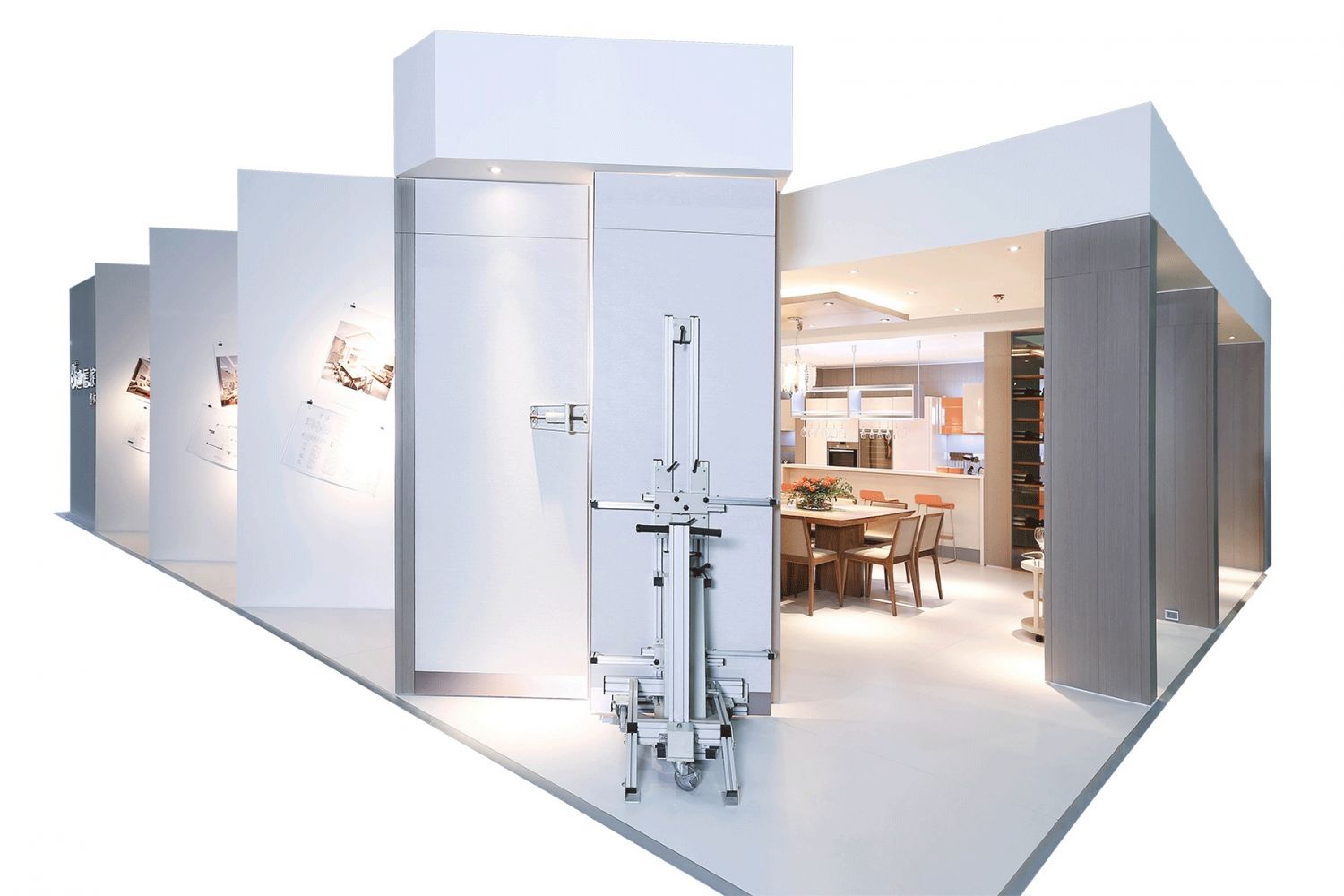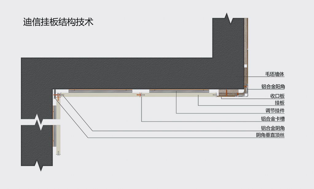 迪信掛板技術利用鋁合金Z型卡槽可實現墻板間的掛接,頂絲配件垂直調節(jié)陰角,鋁合金陽角則在轉角處運用,對墻體、木皮板、夾板、瓷磚等都可實現牢固拼接,既美觀又安全,最大程度的實現墻板之間的無縫掛接,完成空間平直。