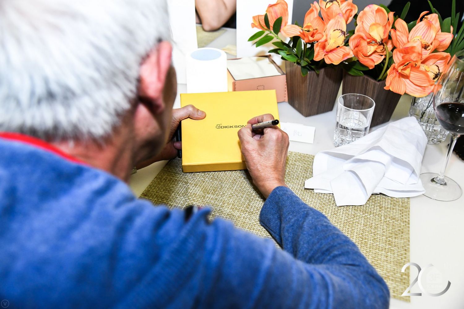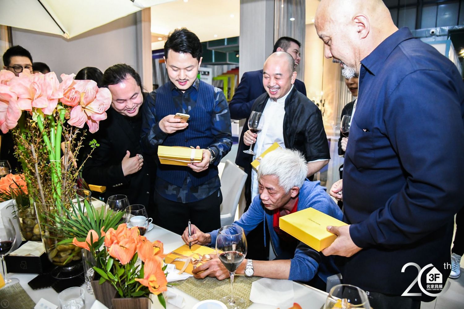 宴會的結(jié)尾梁董為大家送上了一份小禮品--手工縫制全牛皮紙巾包,精美的禮品引來了大家的贊賞,并紛紛求“禧哥”簽名。