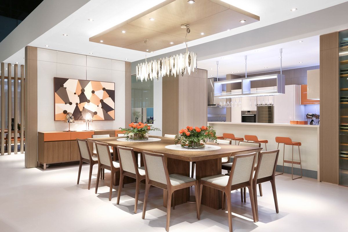 迪信家具空間布局中的多功能生活區(qū),打破呆板的封閉化格局,將餐廳與客廳融匯在一起,也讓廚房富有流動(dòng)性。