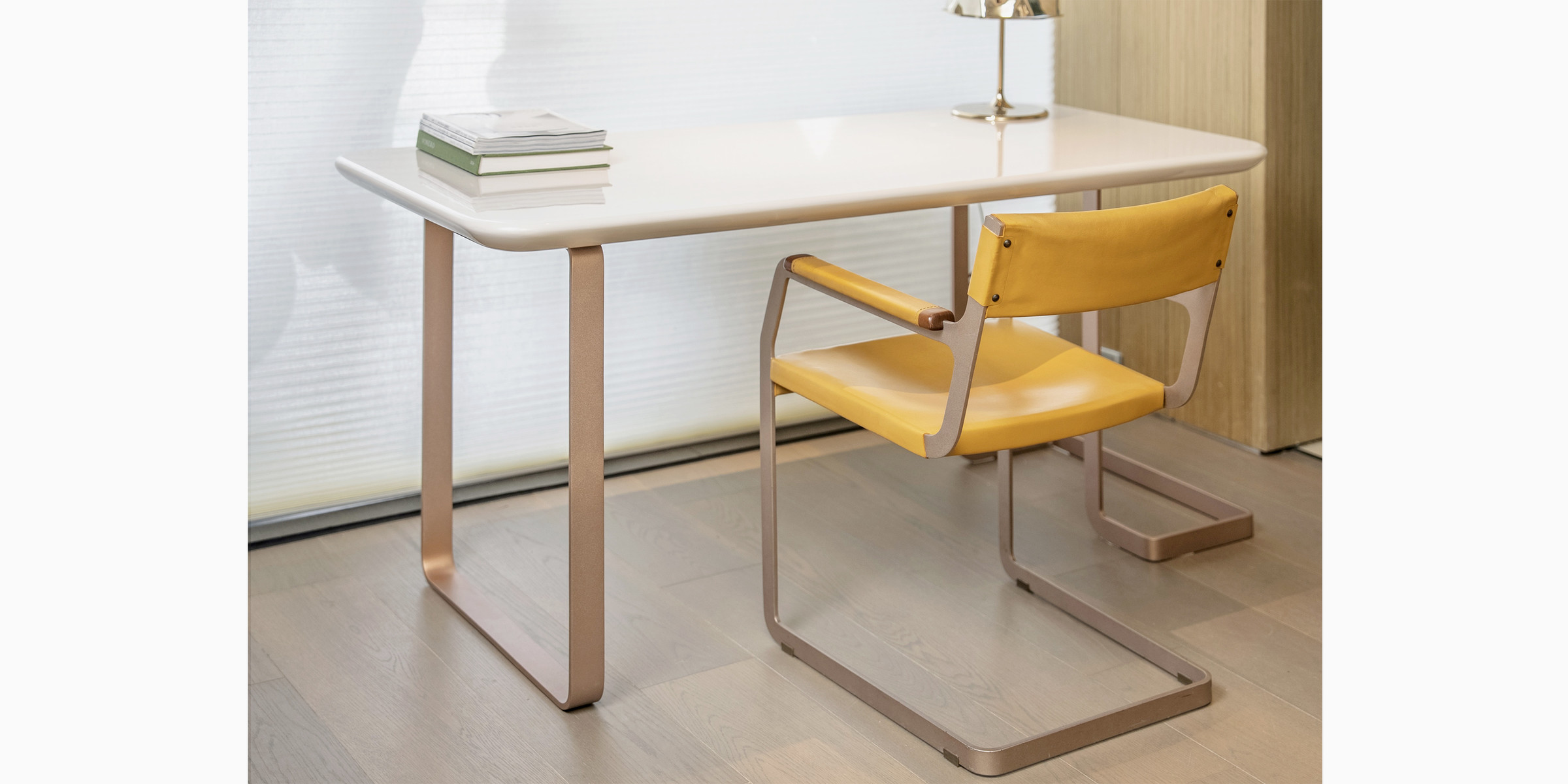 ? 優(yōu)質(zhì)扁鋼椅架特殊防銹處理,經(jīng)1層意大利PU玫瑰金和透明面漆/1層PU深灰面漆噴涂