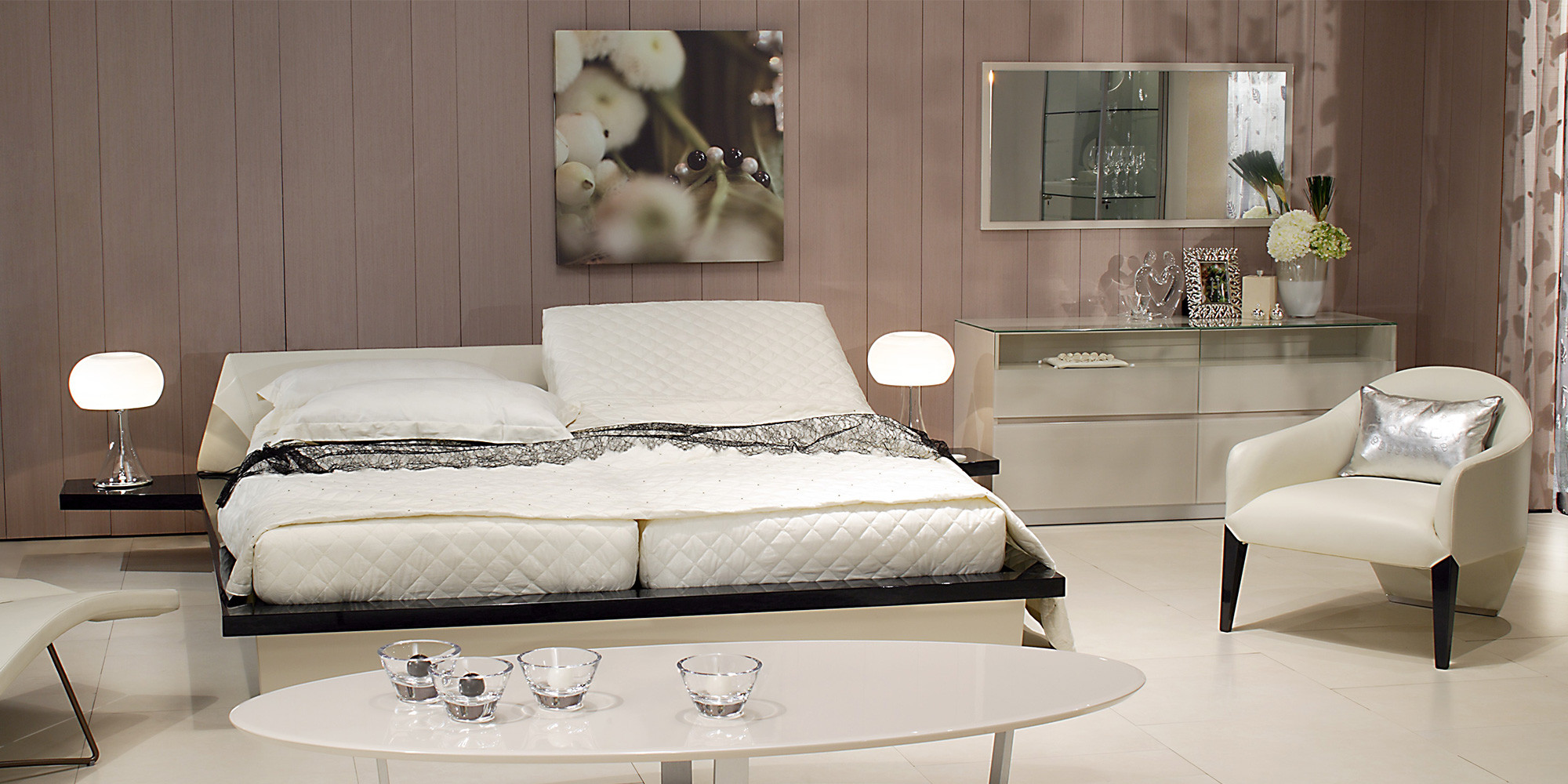 ? 亮光鋼琴漆鏡框,經(jīng)2層UV底漆和2層意大利PU亮光漆噴涂處理,羊毛球高速拋光