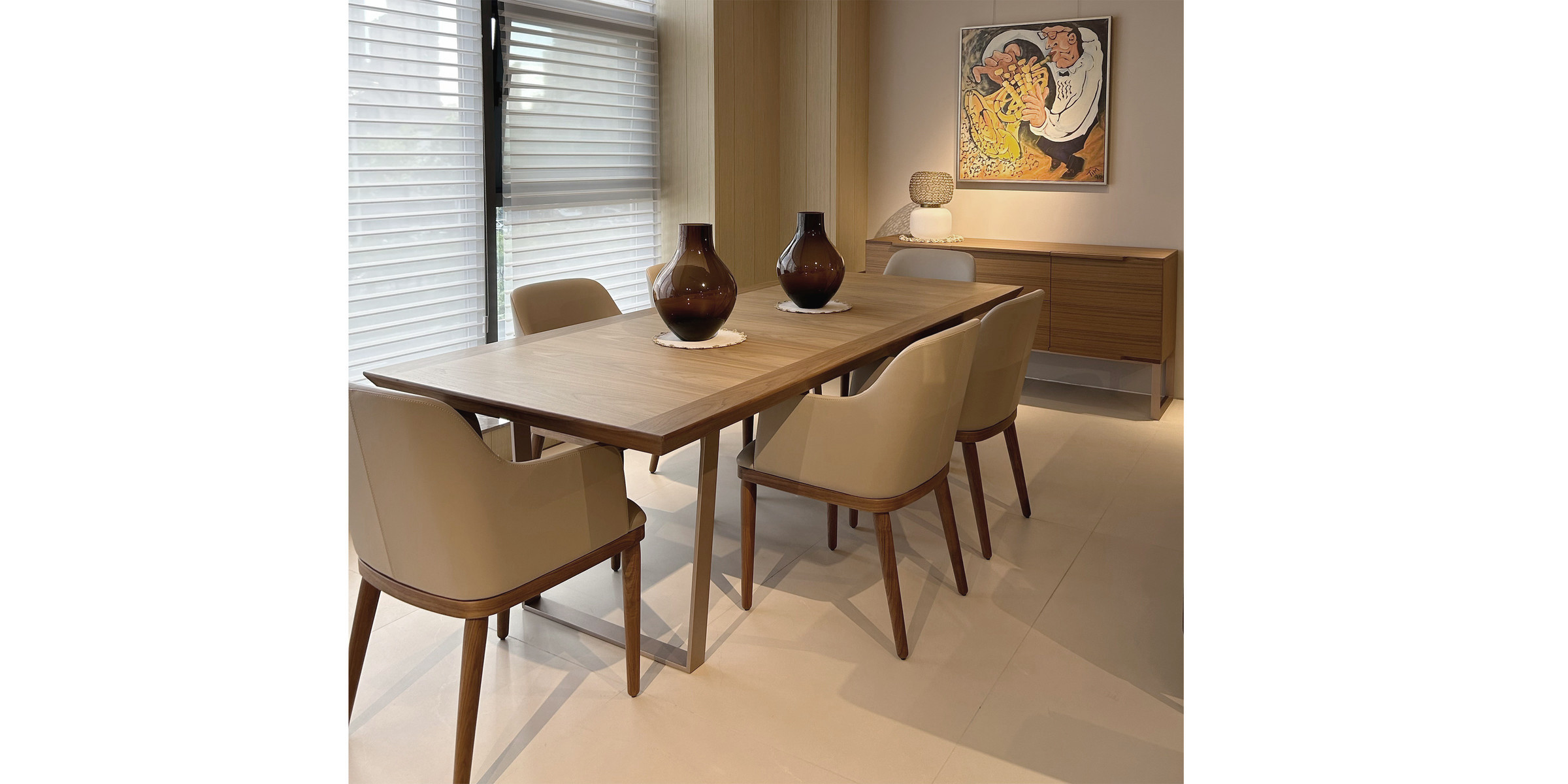 賞心悅目的美國胡桃木自然山紋?;臺面邊沿斜面設計,使之整體線條流暢、自然。