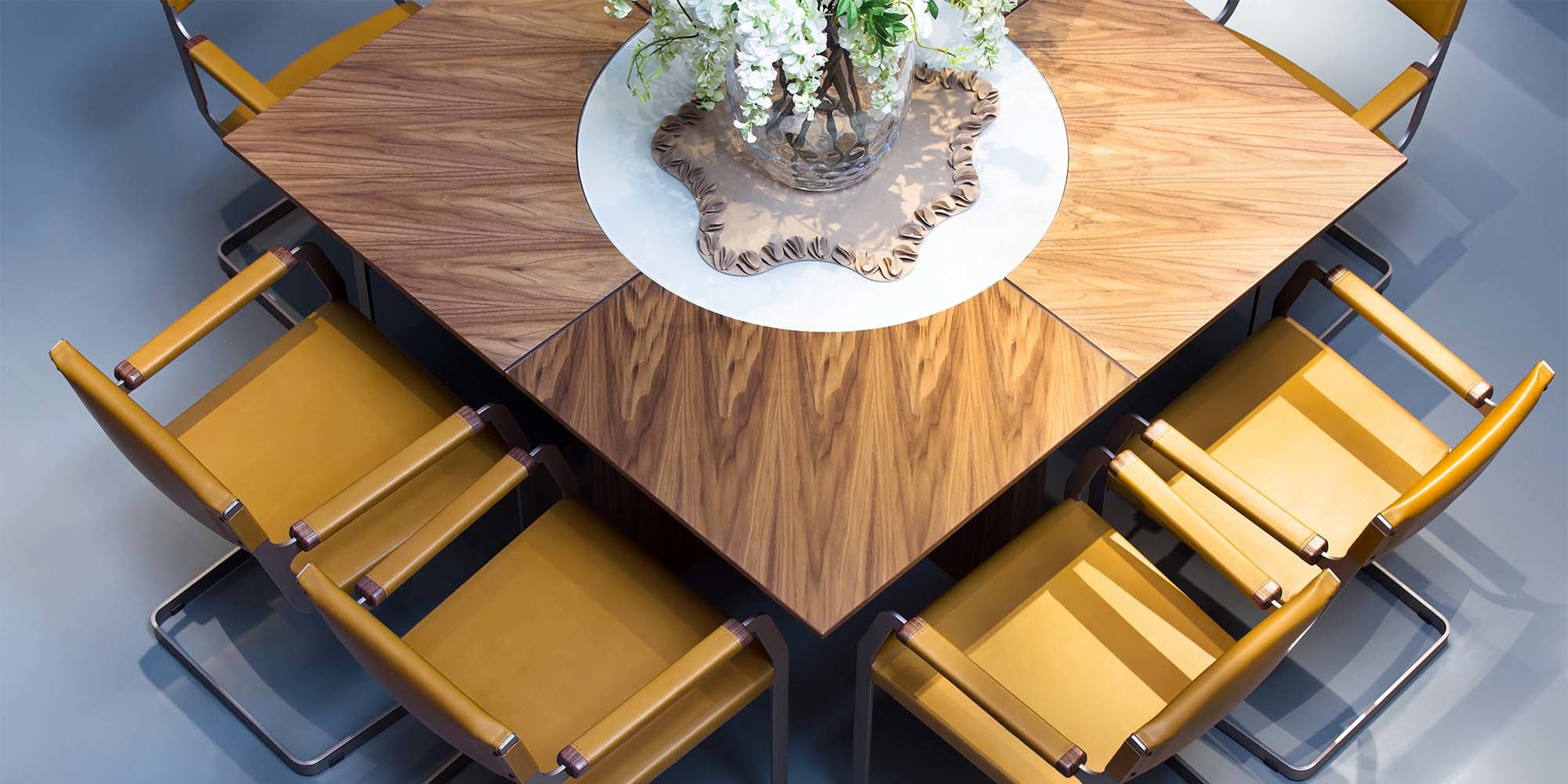 ? 內(nèi)圓盤采用8mm厚鋼化玻璃靜音轉(zhuǎn)盤,經(jīng)1層意大利水性啞光漆噴涂處理