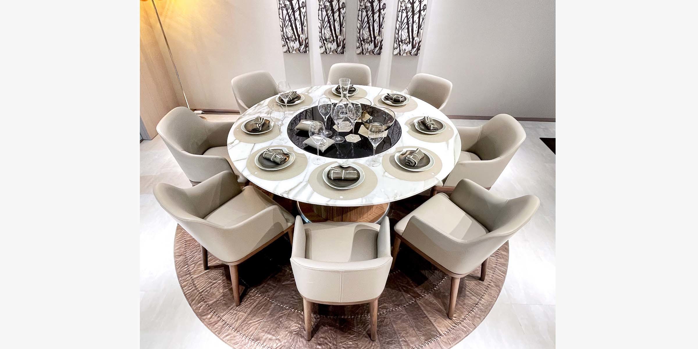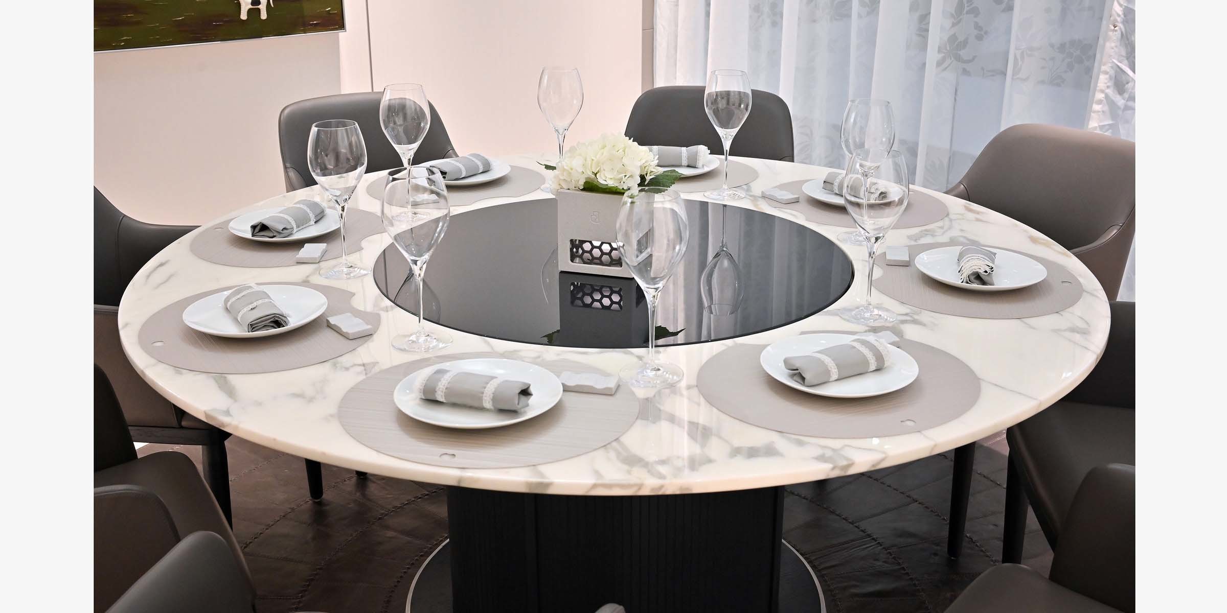 ? 迪信自主研發(fā)電動餐臺轉盤,厚度60mm,采用大功率、低噪音電機搭配高強度齒輪軸承設計,運轉穩(wěn)定,噪音小,轉盤承重高,最大支持2.3米直徑的玻璃,配套遙控器操控可實現(xiàn)正反轉、調速等功能